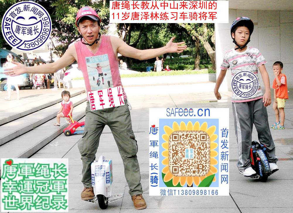 唐绳长教从中山来深圳11岁唐泽林练习车骑将军独轮。