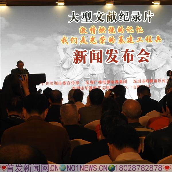 由中共深圳市委宣传部和深圳广电集团联合深圳市晴耕雨读苑文化传媒、深圳市华视传媒、八一电影制片厂拍摄的大型文献纪录片《激情燃烧的记忆—我们是光荣的基建工程兵》在深圳五洲宾馆深圳厅举行新闻发布会。中共深圳市委常委、宣传部长李小甘出席了新闻发布会,原基建工程兵老领导和集体转业在深圳各大公司的代表共200多人参加了发布会。